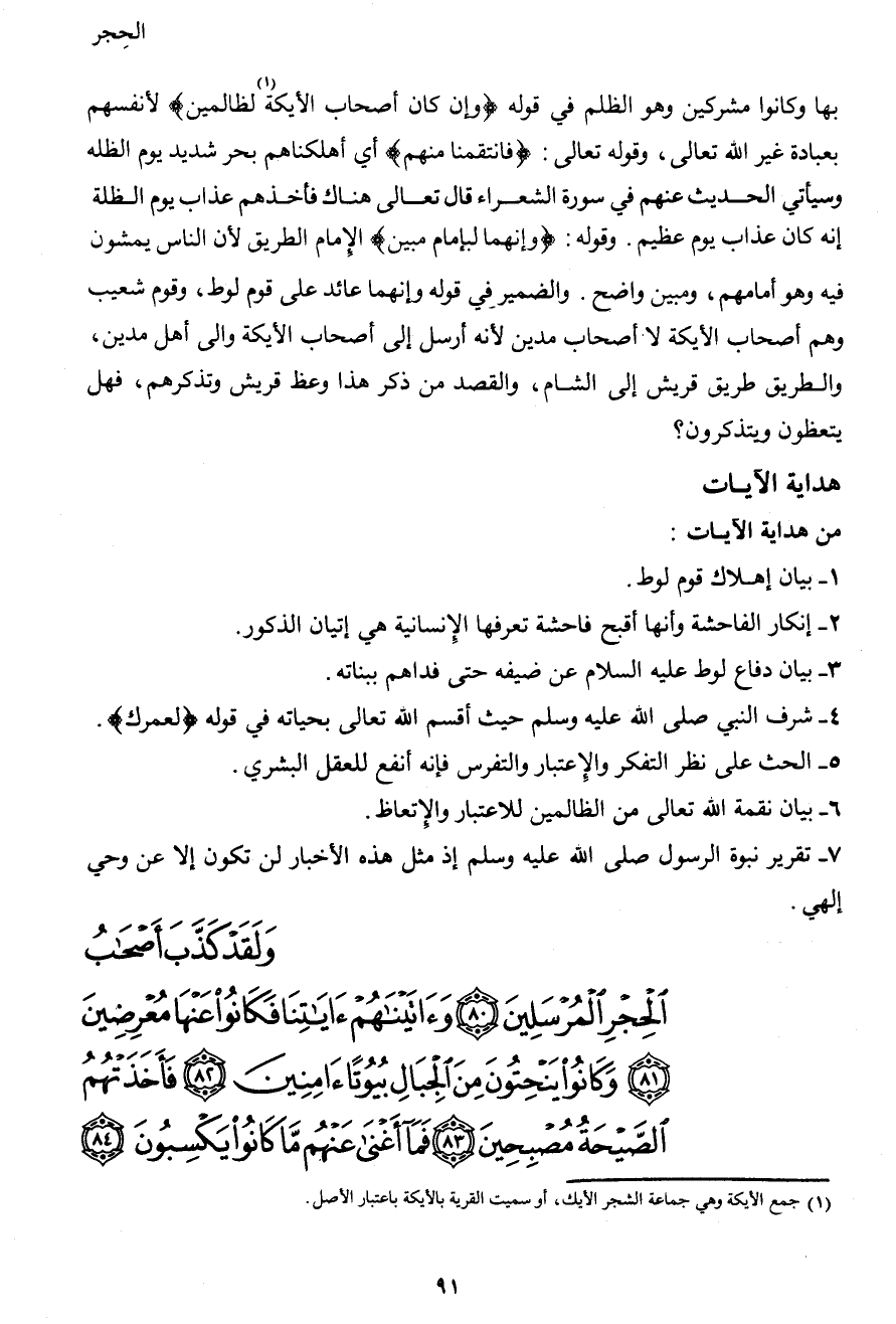 وَلَقَدْ كَذَّبَ أَصْحَابُ الحِجْرِ الْمُرْسَلِينَ (80) وَآتَيْنَاهُمْ آيَاتِنَا فَكَانُواْ عَنْهَا مُعْرِضِينَ (81) وَكَانُواْ يَنْحِتُونَ مِنَ الْجِبَالِ بُيُوتًا آمِنِينَ (82) فَأَخَذَتْهُمُ الصَّيْحَةُ مُصْبِحِينَ (83) فَمَا أَغْنَى عَنْهُم مَّا كَانُواْ يَكْسِبُونَ (84)