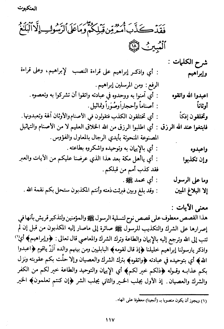 فَقَدْ كَذَّبَ أُمَمٌ مِنْ قَبْلِكُمْ وَمَا عَلَى الرَّسُولِ إِلَّا الْبَلاغُ الْمُبِينُ (18)