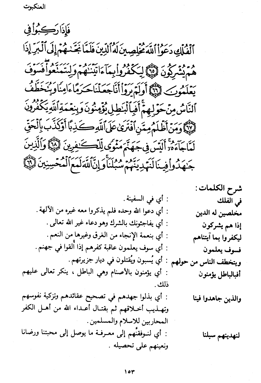 فَإِذَا رَكِبُوا فِي الْفُلْكِ دَعَوُا اللهَ مُخْلِصِينَ لَهُ الدِّينَ فَلَمَّا نَجَّاهُمْ إِلَى الْبَرِّ إِذَا هُمْ يُشْرِكُونَ (65)