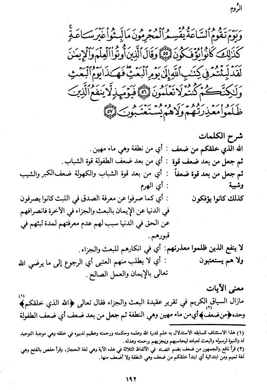 وَيَوْمَ تَقُومُ السَّاعَةُ يُقْسِمُ الْمُجْرِمُونَ مَا لَبِثُوا غَيْرَ سَاعَةٍ كَذَلِكَ كَانُوا يُؤْفَكُونَ (55) وَقَالَ الَّذِينَ أُوتُوا الْعِلْمَ وَالْأِيمَانَ لَقَدْ لَبِثْتُمْ فِي كِتَابِ اللهِ إِلَى يَوْمِ الْبَعْثِ فَهَذَا يَوْمُ الْبَعْثِ وَلَكِنَّكُمْ كُنْتُمْ لا تَعْلَمُونَ (56) فَيَوْمَئِذٍ لا يَنْفَعُ الَّذِينَ ظَلَمُوا مَعْذِرَتُهُمْ وَلا هُمْ يُسْتَعْتَبُونَ (57)