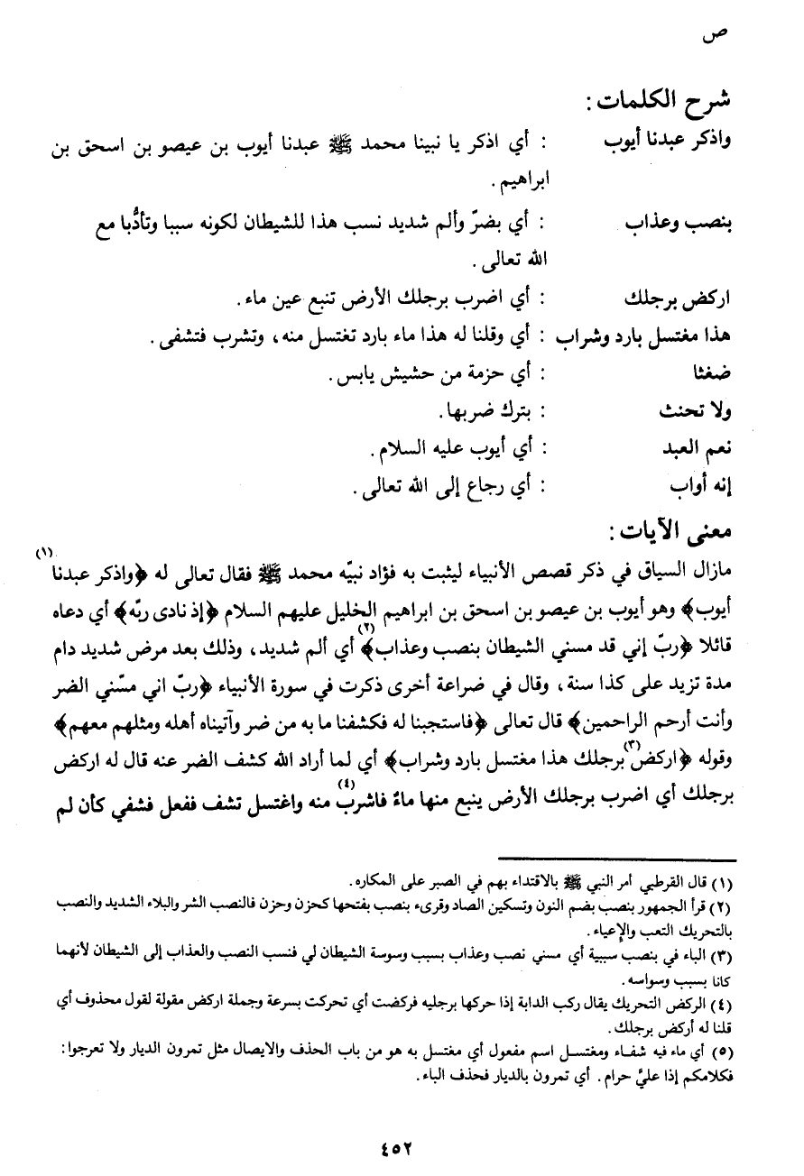 2 - قرأ الجمهور بنصب بضم النون وتسكين الصاد وقرئ بنصب بفتحها كحزن وحزن والنصب الشر والبلاء الشديد والنصب بالتحريك التعب والإعياء