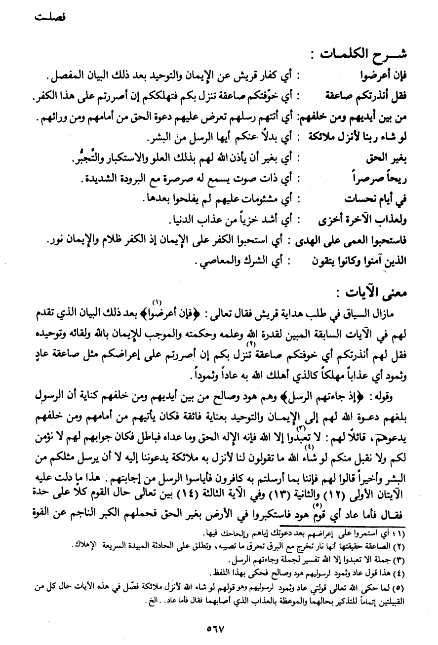 5- لما حكى الله تعالى قولتي عاد وثمود لرسوليهم وهو قولهم لو شاء الله لأنزل ملائكة فصّل في هذه الآيات حال كل من القبيلتين إتماماً للتذكير بحالهما والموعظة بالعذاب الذي أصابهما فقال فأما عاد.. الخ.