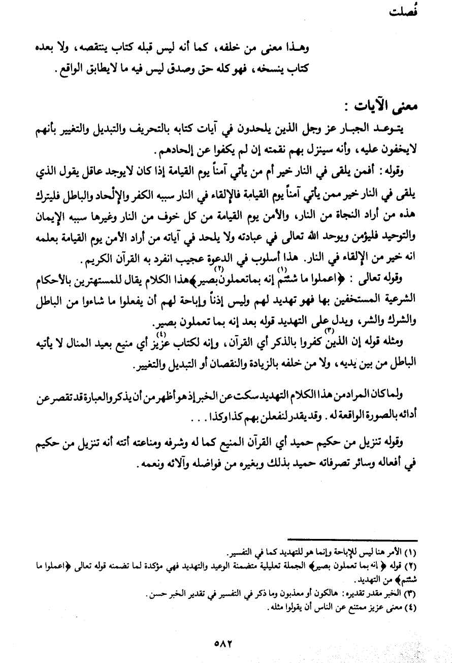 ومثله قوله {إِنَّ الَّذِينَ (3) كَفَرُوا بِالذِّكْرِ} أي القرآن، {وَإِنَّهُ لَكِتَابٌ عَزِيزٌ} (4) أي منيع بعيد المنال لا يأتيه الباطل من بين يديه، ولا من خلفه بالزيادة والنقصان أو التبديل والتغيير.