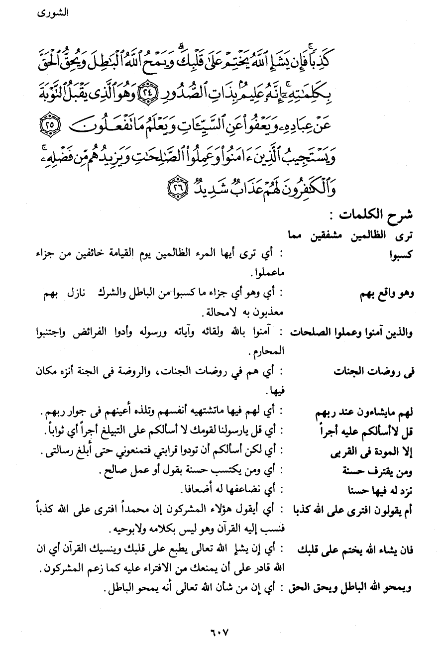 كَذِباً فَإِنْ يَشَأِ اللهُ يَخْتِمْ عَلَى قَلْبِكَ وَيَمْحُ اللهُ الْبَاطِلَ وَيُحِقُّ الْحَقَّ بِكَلِمَاتِهِ إِنَّهُ عَلِيمٌ بِذَاتِ الصُّدُورِ (24) وَهُوَ الَّذِي يَقْبَلُ التَّوبَةَ عَنْ عِبَادِهِ وَيَعْفُو عَنِ السَّيِّئَاتِ وَيَعْلَمُ مَا تَفْعَلُونَ (25) وَيَسْتَجِيبُ الَّذِينَ آمَنُوا وَعَمِلُوا الصَّالِحَاتِ وَيَزِيدُهُمْ مِنْ فَضْلِهِ وَالْكَافِرُونَ لَهُمْ عَذَابٌ شَدِيدٌ (26)
