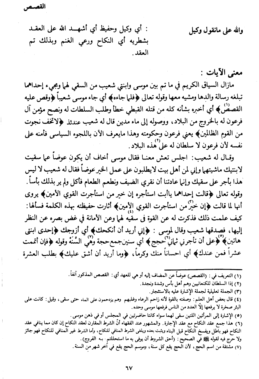 والله على ما نقول وكيل: أي وكيل وحفيظ أي أشهد الله على العقد بشطريه أي النكاح ورعي الغنم وبذلك تم العقد.