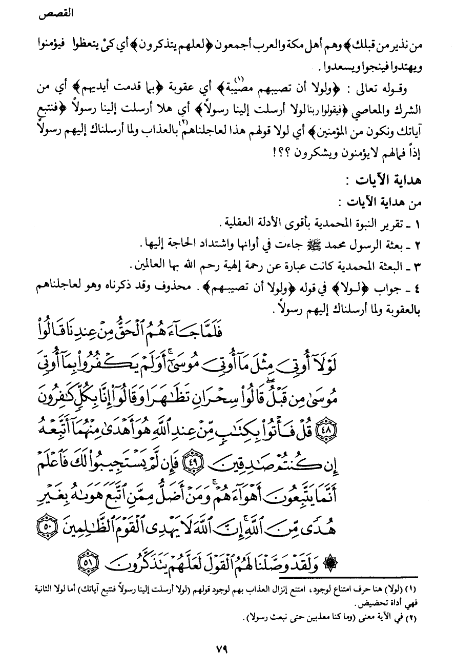 فَلَمَّا جَاءَهُمُ الْحَقُّ مِنْ عِنْدِنَا قَالُوا لَوْلا أُوتِيَ مِثْلَ مَا أُوتِيَ مُوسَى أَوَلَمْ يَكْفُرُوا بِمَا أُوتِيَ مُوسَى مِنْ قَبْلُ قَالُوا سِحْرَانِ تَظَاهَرَا وَقَالُوا إِنَّا بِكُلٍّ كَافِرُونَ (48) قُلْ فَأْتُوا بِكِتَابٍ مِنْ عِنْدِ اللهِ هُوَ أَهْدَى مِنْهُمَا أَتَّبِعْهُ إِنْ كُنْتُمْ صَادِقِينَ (49) فَإِنْ لَمْ يَسْتَجِيبُوا لَكَ فَاعْلَمْ أَنَّمَا يَتَّبِعُونَ أَهْوَاءَهُمْ وَمَنْ أَضَلُّ مِمَّنِ اتَّبَعَ هَوَاهُ بِغَيْرِ هُدىً مِنَ اللهِ إِنَّ اللهَ لا يَهْدِي الْقَوْمَ الظَّالِمِينَ (50) وَلَقَدْ وَصَّلْنَا لَهُمُ الْقَوْلَ لَعَلَّهُمْ يَتَذَكَّرُونَ (51)