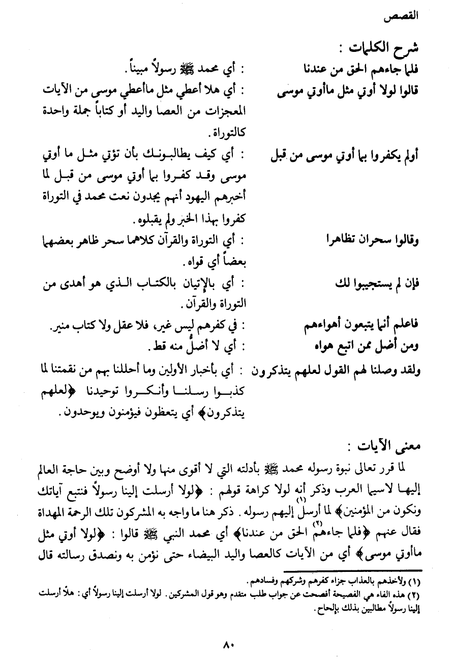 أو لم يكفروا بما أوتي موسى من قبل: أي كيف يطالبونك بأن تؤتى مثل ما أوتي موسى وقد كفروا بما أوتي موسى من قبل لما أخبرهم اليهود أنهم يجدون نعت محمد في التوراة كفروا بهذا الخبر ولم يقبلوه.