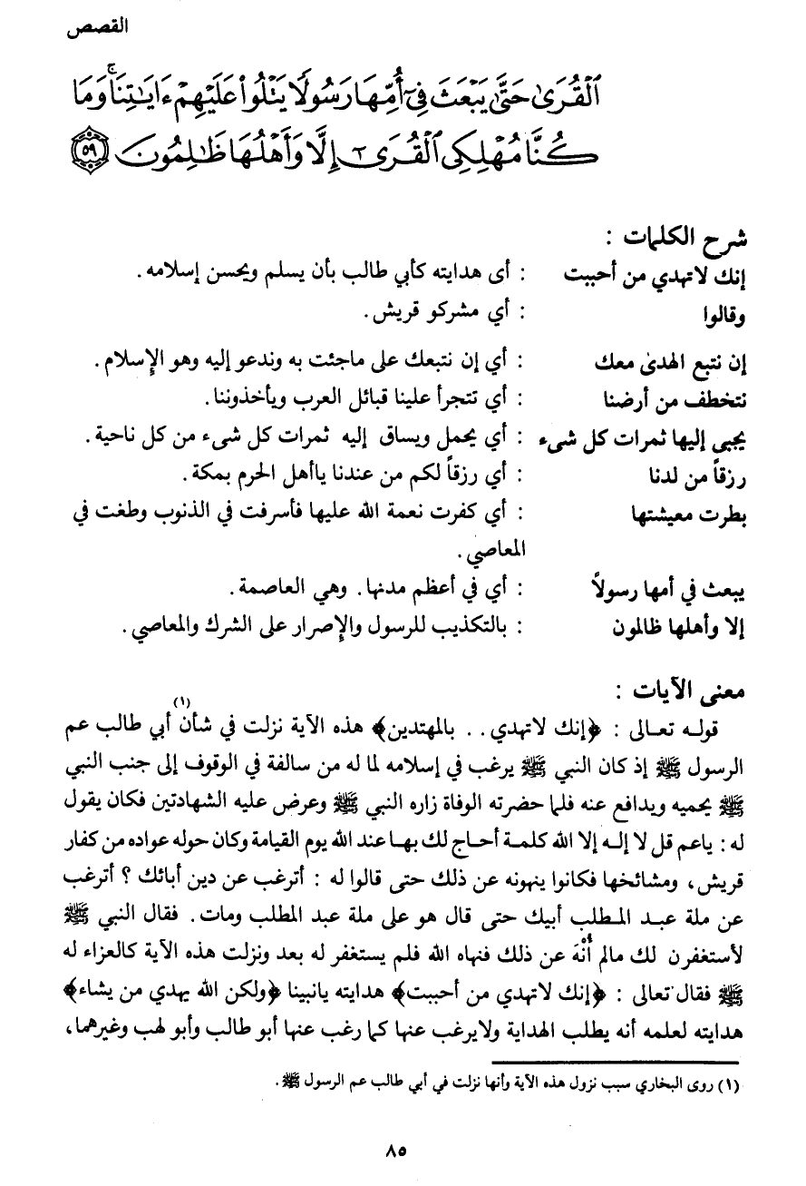 1- روى البخاري سبب نزول هذه الآية وأنها نزلت في أبي طالب عم الرسول صَلَّى اللهُ عَلَيْهِ وَسَلَّمَ.