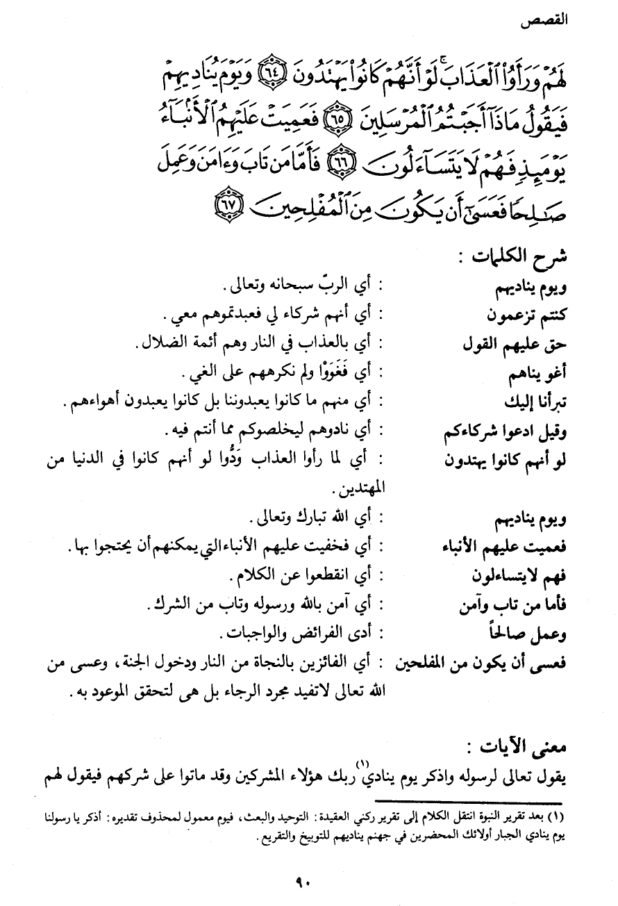 لَهُمْ وَرَأَوُا الْعَذَابَ لَوْ أَنَّهُمْ كَانُوا يَهْتَدُونَ (64) وَيَوْمَ يُنَادِيهِمْ فَيَقُولُ مَاذَا أَجَبْتُمُ الْمُرْسَلِينَ (65) فَعَمِيَتْ عَلَيْهِمُ الْأَنْبَاءُ يَوْمَئِذٍ فَهُمْ لا يَتَسَاءَلُون (66) فَأَمَّا مَنْ تَابَ وَآمَنَ وَعَمِلَ صَالِحاً فَعَسَى أَنْ يَكُونَ مِنَ الْمُفْلِحِينَ (67)