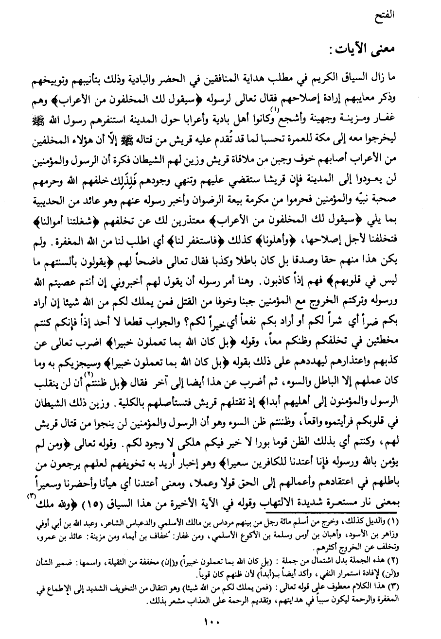 ما زال السياق الكريم في مطلب هداية المنافقين في الحضر والبادية وذلك بتأنيبهم وتوبيخهم وذكر معايبهم إرادة إصلاحهم فقال تعالى لرسوله {سَيَقُولُ لَكَ الْمُخَلَّفُونَ مِنَ الأَعْرَابِ} وهم غفار ومزينة وجهينة وأشجع1 وكانوا أهل بادية وأعرابا حول المدينة استنفرهم رسول الله صَلَّى اللهُ عَلَيْهِ وَسَلَّمَ ليخرجوا معه إلى مكة للعمرة تحسبا لما قد تقدم عليه قريش من قتاله صَلَّى اللهُ عَلَيْهِ وَسَلَّمَ إلا أن هؤلاء المخلفين من الأعراب أصابهم خوف وجبن من ملاقاة قريش وزين لهم الشيطان فكرة أن الرسول والمؤمنين لن يعودوا إلى المدينة فإن قريشا ستقضي عليهم وتنهي وجودهم فلذلك خلفهم الله وحرمهم صحبة نبيه والمؤمنين فحرموا من مكرمة بيعة الرضوان وأخبر رسوله عنهم وهو عائد من الحديبية بما يلي {سَيَقُولُ لَكَ الْمُخَلَّفُونَ مِنَ الأَعْرَابِ} معتذرين لك عن تخلفهم {شَغَلَتْنَا أَمْوَالُنَا} فتخلفنا لأجل إصلاحها، {وَأَهْلُونَا} كذلك {فَاسْتَغْفِرْ لَنَا} أي اطلب لنا من الله المغفرة. ولم يكن هذا منهم حقا وصدقا بل كان باطلا وكذبا فقال تعالى فاضحاً لهم {يَقُولُونَ بِأَلْسِنَتِهِمْ مَا لَيْسَ فِي قُلُوبِهِمْ} فهم إذاً كاذبون. وهنا أمر رسوله أن يقول لهم أخبروني إن أنتم عصيتم الله ورسوله وتركتم الخروج مع المؤمنين جبنا وخوفا من القتل فمن يملك لكم من الله شيئا إن أراد بكم ضراً أي شراً لكم أو أراد بكم نفعاً أي خيرا لكم؟ والجواب قطعاً لا أحد إذاً فإنكم كنتم مخطئين في تخلفكم وظنكم معاً، وقوله {بَلْ كَانَ اللهُ بِمَا تَعْمَلُونَ خَبِيراً} اضرب تعالى عن كذبهم واعتذارهم ليهددهم على ذلك بقوله {بَلْ كَانَ اللهُ بِمَا تَعْمَلُونَ خَبِيراً} وسيجزيكم به وما كان عملهم إلا الباطل والسوء، ثم أضرب عن هذا أيضا إلى آخر فقال {بَلْ ظَنَنْتُمْ2 أَنْ لَنْ يَنْقَلِبَ الرَّسُولُ وَالْمُؤْمِنُونَ إِلَى أَهْلِيهِمْ أَبَداً} إذ تقتلهم قريش فتستأصلهم بالكلية. وزين ذلك الشيطان في قلوبكم فرأيتموه واقعا، وظننتم ظن السوء وهو أن الرسول والمؤمنين لن ينجوا من قتال قريش لهم، وكنت أي بذلك الظن قوما بورا لا خير فيكم هلكى لا وجود لكم. وقوله تعالى {وَمَنْ لَمْ يُؤْمِنْ بِاللهِ وَرَسُولِهِ فَإِنَّا أَعْتَدْنَا لِلْكَافِرِينَ سَعِيراً} وهو إخبار أريد به تخويفهم لعلهم يرجعون من باطلهم في اعتقادهم وأعمالهم إلى الحق قولا وعملا، ومعنى اعتدنا أي هيئنا وأحضرنا وسعيراً بمعنى نار مستعره شديدة الالتهاب وقوله في الآية الأخيرة من هذا السياق (15) {وَلِلَّهِ مُلْكُ3