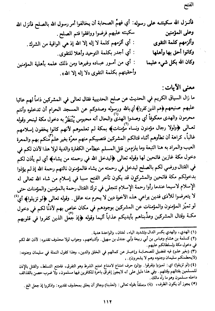 ما زال السياق الكريم في الحديث عن صلح الحديبية فقال تعالى في المشركين ذاماً لهم عائبا عليهم صنيعهم {هُمُ الَّذِينَ كَفَرُوا} أي بالله ورسوله وصدوكم عن المسجد الحرام أن تدخلوه وأنت محرمون والهدى معكوفاً أي وصدوا الهدى1 والحال أنه محبوس ينتظر به دخول مكة لينحر وقوله تعالى {وَلَوْلا رِجَالٌ مُؤْمِنُونَ وَنِسَاءٌ2 مُؤْمِنَاتٌ} بمكة لم تعلموهم لأنهم كانوا يخفون إسلامهم غالباً، كراهة أن تطأوهم أثناء قتالكم المشركين فتصيبكم منهم معرة بغير علم3 منكم بهم والمعرة العيب والمراد به هنا التبعة وما يلزم من قتل المسلم خطأ من الكفارة والدية لولا هذا لأذن لكم بدخول مكة غازين فاتحين لها وقوله تعالى {لِيُدْخِلَ اللهُ فِي رَحْمَتِهِ مَنْ يَشَاءُ} أي لم يأذن لكم في القتال ورضي لكم بالصلح ليدخل في رحمته من يشاء فالمؤمنون نالتهم رحمة الله إذ لم يؤذوا بدخولكم مكة فاتحين والمشركون قد يكون تأخر الفتح سببا في إسلام من شاء الله تعالى له الإسلام لا سيما عندما رأوا رحمة الإسلام وتتجلى في ترك القتال رحمة بالمؤمنين والمؤمنات حتى لا يتعرضوا للأذى فدين يراعي هذه الأخوة دين لا يحرم منه عاقل. وقوله تعالى {لَوْ تَزَيَّلُوا} أي4 لو تميز المؤمنون والمؤمنات على المشركين بوجودهم في مكان خاص بهم لأذنا لكم في دخول مكة وقتال المشركين وعذبناهم بأيديكم عذباً أليما وقوله {إِذْ جَعَلَ5 الَّذِينَ كَفَرُوا فِي قُلُوبِهِمُ