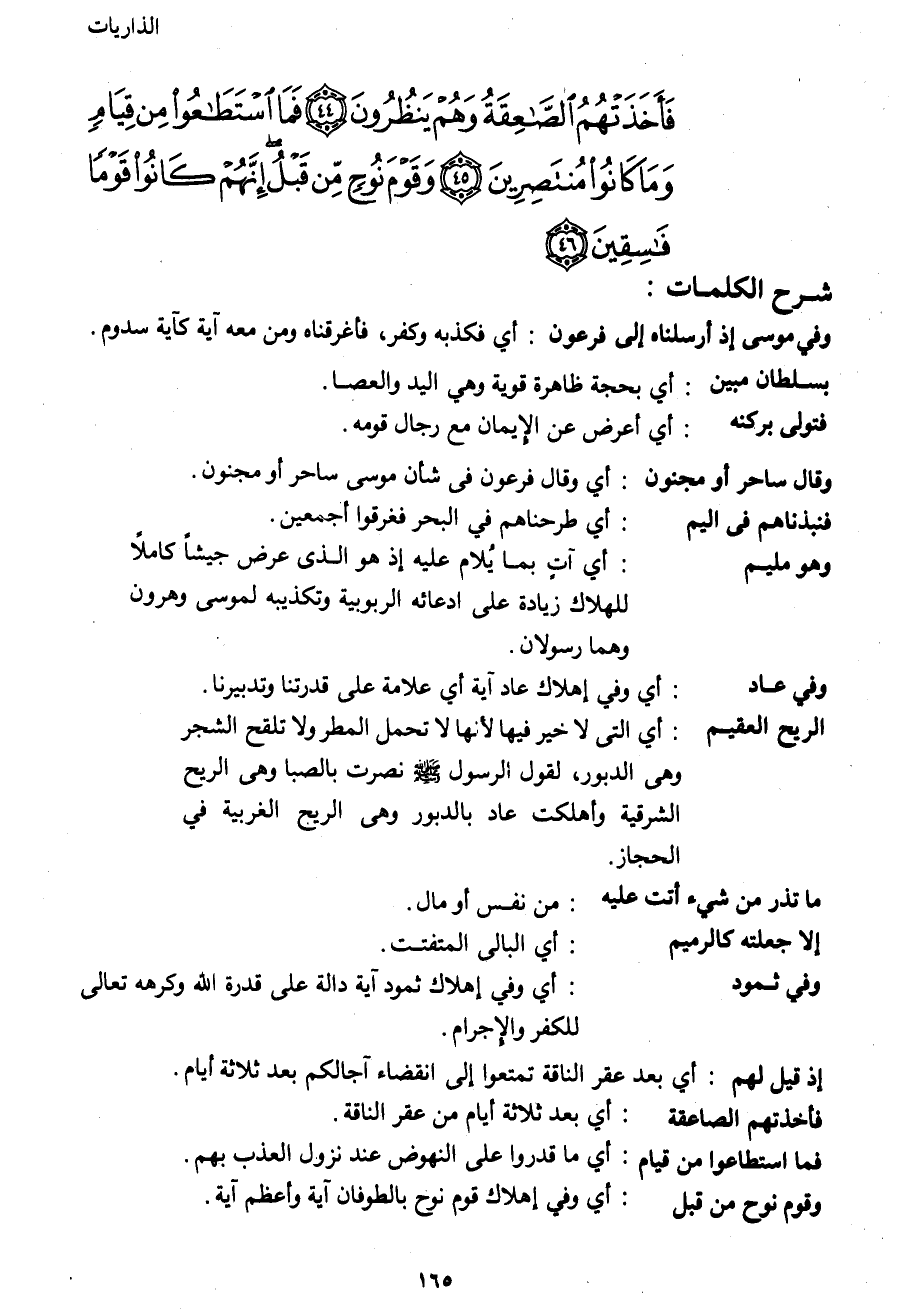فَأَخَذَتْهُمُ الصَّاعِقَةُ وَهُمْ يَنْظُرُونَ (44) فَمَا اسْتَطَاعُوا مِنْ قِيَامٍ وَمَا كَانُوا مُنْتَصِرِينَ (45) وَقَوْمَ نُوحٍ مِنْ قَبْلُ إِنَّهُمْ كَانُوا قَوْماً فَاسِقِينَ (46)