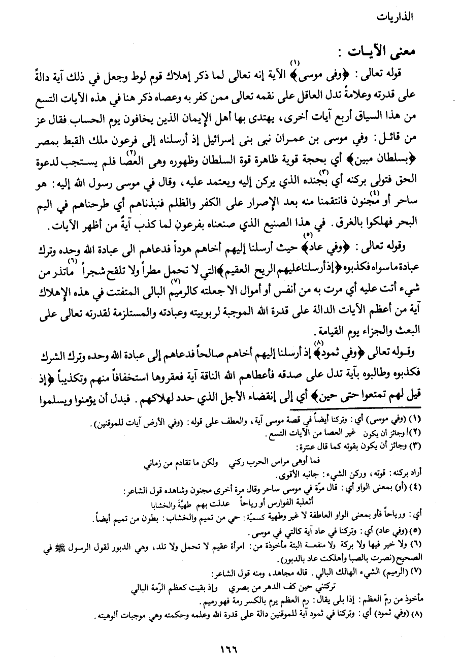 قوله تعالى {وَفِي مُوسَى} 1 الآية إنه تعالى لما ذكر إهلاك قوم لوط وجعل في ذلك آية دالةً على قدرته وعلامةً تدل العاقل على نقمه تعالى ممن كفر به وعصاه ذكر هنا في هذه الآيات التسع من هذا السياق أربع آيات
