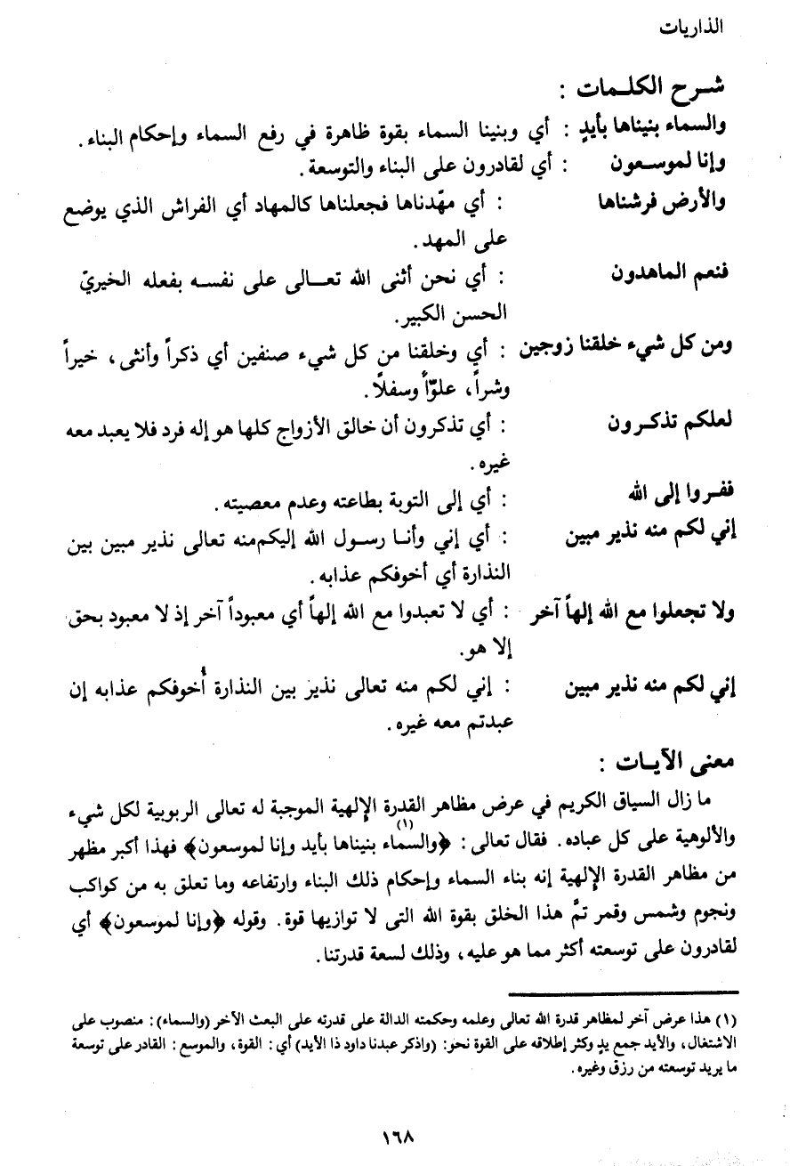 1 هذا عرض آخر قدرة الله تعالى وعلمه وحكمته الدالة على قدرته على البعث الآخر (والسماء) : منصوب على الاشتغال، والأيد جمع يدٍ وكثر إطلاقه على القوة نحو: (واذكر عبدنا داود ذا الأيد) أي: القوة، والموسع: القادر على توسعة ما يريد توسعته من رزق وغيره.