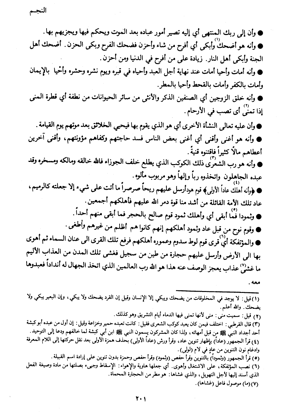 * {وَأَنَّهُ أَهْلَكَ4 عَاداً الْأُولَى} قوم هود أرسل عليهم ريحاً صرصراً ما أتت على شيء إلا جعلته كالرميم، عاد تلك الأمة القائلة من أشد منا قوة دمر الله عليهم فأهلكهم أجمعين.