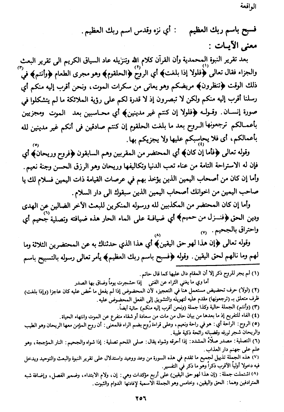 وقوله تعالى {إِنَّ هَذَا7 لَهُوَ حَقُّ الْيَقِينِ} 8 أي هذا الذي حدثناك به عن المحتضرين الثلاثة وما لهم وما نالهم لحق اليقين. وقوله {فَسَبِّحْ بِاسْمِ رَبِّكَ الْعَظِيمِ} يأمر تعالى رسوله بالتسبيح باسم
