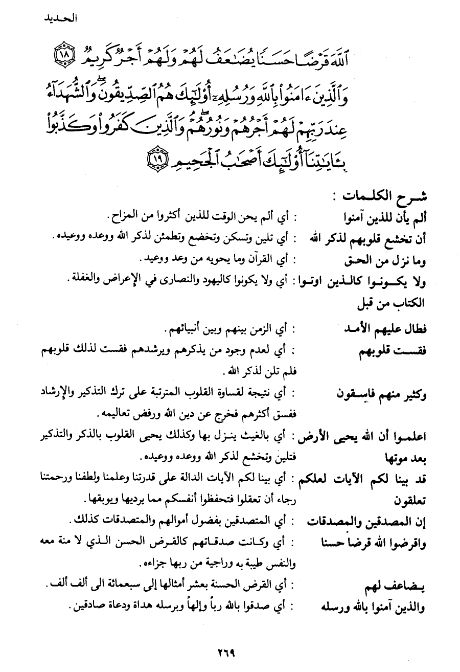 اللهَ قَرْضاً حَسَناً يُضَاعَفُ لَهُمْ وَلَهُمْ أَجْرٌ كَرِيمٌ (18) وَالَّذِينَ آمَنُوا بِاللهِ وَرُسُلِهِ أُولَئِكَ هُمُ الصِّدِّيقُونَ وَالشُّهَدَاءُ عِنْدَ رَبِّهِمْ لَهُمْ أَجْرُهُمْ وَنُورُهُمْ وَالَّذِينَ كَفَرُوا وَكَذَّبُوا بِآياتِنَا أُولَئِكَ أَصْحَابُ الْجَحِيمِ (19)