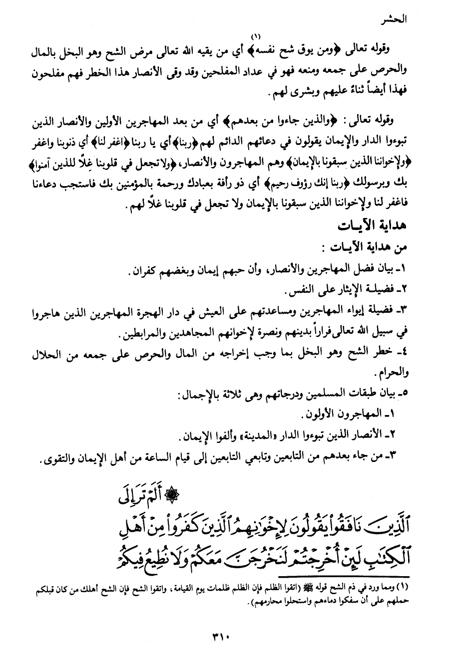 وقوله تعالى {وَمَنْ يُوقَ شُحَّ نَفْسِهِ} 1أي من يقيه الله تعالى مرض الشح وهو البخل بالمال والحرص على جمعه ومنعه فهو في عداد المفلحين وقد وقى الأنصار من هذا الخطر فهم مفلحون فهذا أيضاً ثناءٌ عليهم وبشرى لهم.
