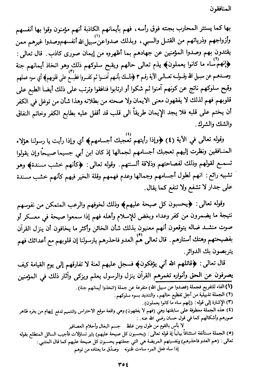 4 هذه الجملة معطوفة على سابقتها وهي (فهم لا يفقهون) وهي واقعة موقع الاحتراس والتتميم لدفع إيهام من يغره ظاهر صورهم وأشكالهم كما في قول حسان رضي الله عنه.: