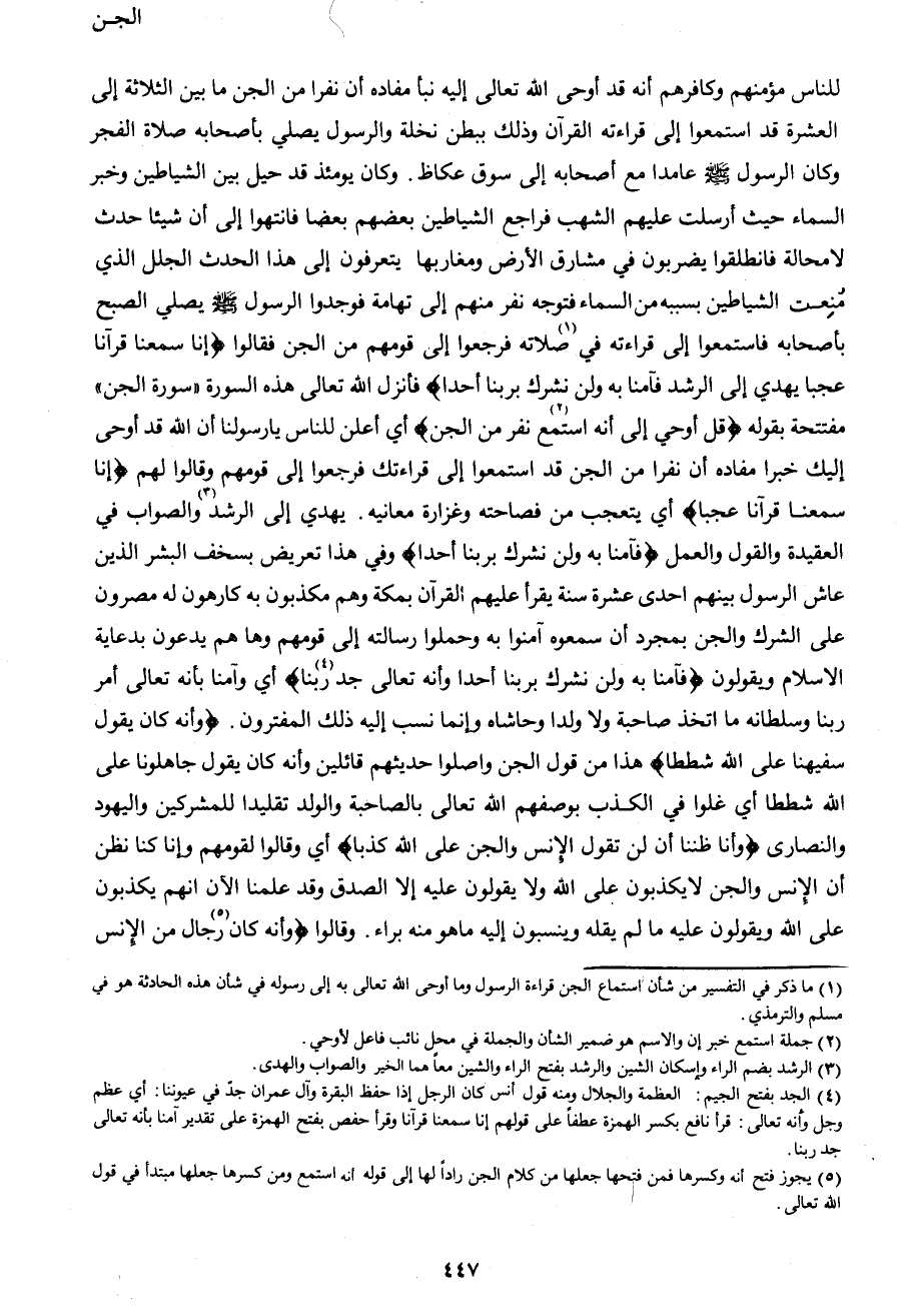 1 ما ذكر في التفسير من شأن استماع الجن قراءة الرسول وما أوحى الله تعالى به إلى رسوله في شأن هذه الحادثة هو في مسلم والترمذي.