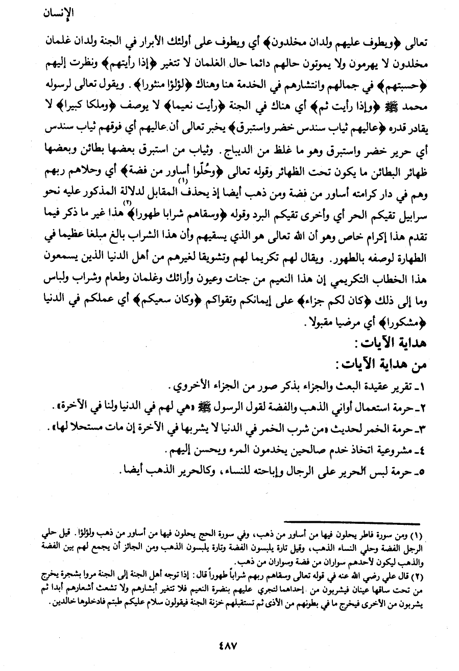 1 ومن سورة فاطر يحلون فيها من أساور من ذهب، وفي سورة الحج يحلون فيها من أساور من ذهب ولؤلؤا. قيل حلي الرجل الفضة وحلي النساء الذهب، وقيل تارة يلبسون الفضة وتارة يلبسون الذهب ومن الجائز أن يجمع لهم بين الفضة والذهب ليكون لأحدهم سواران من فضة وسواران من ذهب.