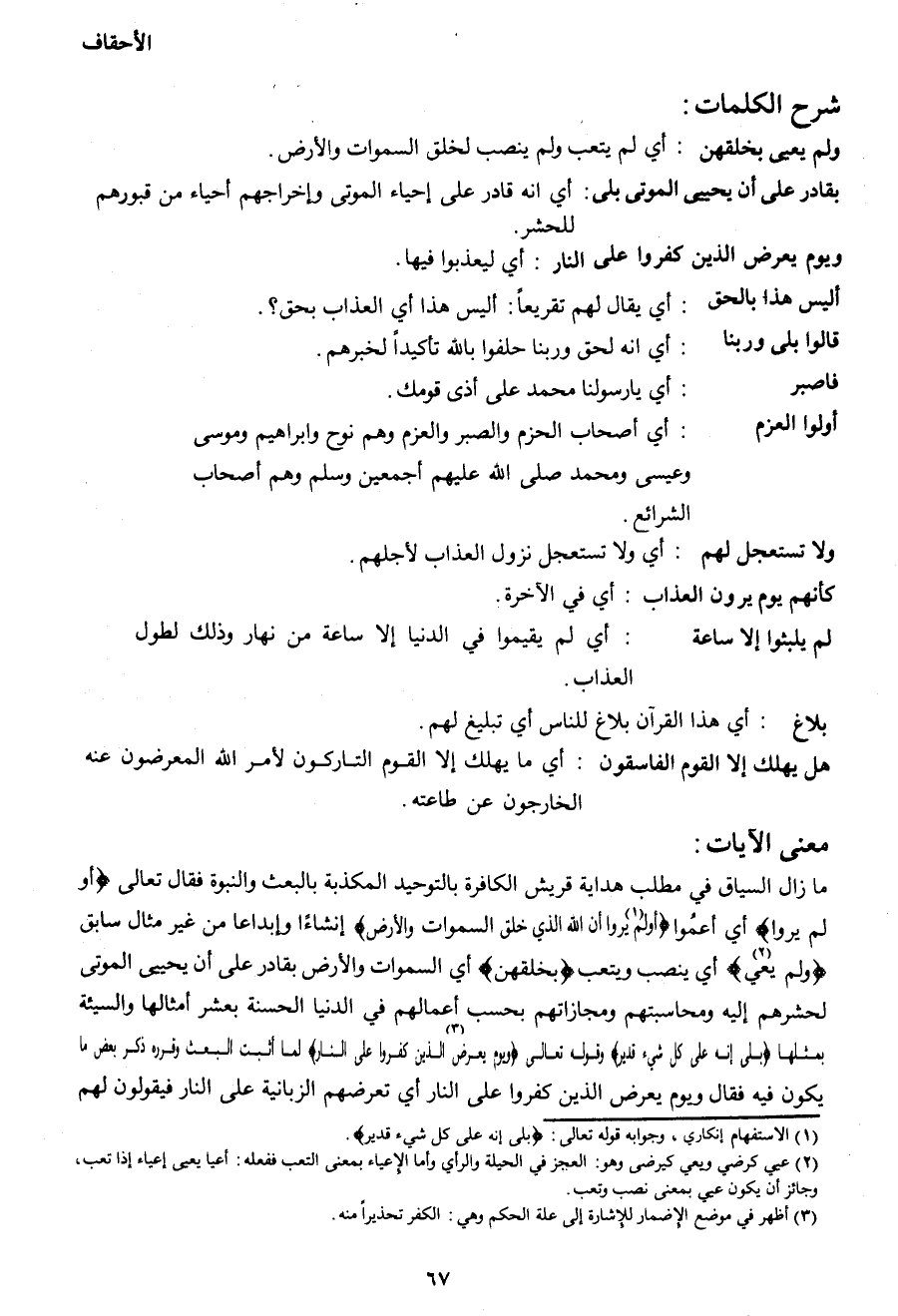 ما زال السياق في مطلب هداية قريش الكافرة بالتوحيد المكذبة بالبعث والنبوة فقال تعالى {أَوَلَمْ يَرَوْا} أي أعموا {أَوَلَمْ1 يَرَوْا أَنَّ اللهَ الَّذِي خَلَقَ السَّمَاوَاتِ وَالْأَرْضَ} إنشاءاً وإبداعا من غير مثال سابق {وَلَمْ يَعْيَ2} أي ينصب ويتعب {بِخَلْقِهِنَّ} أي السموات والأرض بقادر على أن يحييى الموتى لحشرهم إليه ومحاسبتهم ومجازاتهم بحسب أعمالهم في الدنيا الحسنة بعشر أمثالها والسيئة بمثلها {بَلَى إِنَّهُ عَلَى كُلِّ شَيْءٍ قَدِيرٌ} وقوله تعالى {وَيَوْمَ يُعْرَضُ3 الَّذِينَ كَفَرُوا عَلَى النَّارِ} لما أثبت البعث وقرره ذكر بعض ما يكون فيه فقال ويوم يعرض الذين كفروا على النار أي تعرضهم الزبانية على النار فيقولون لهم