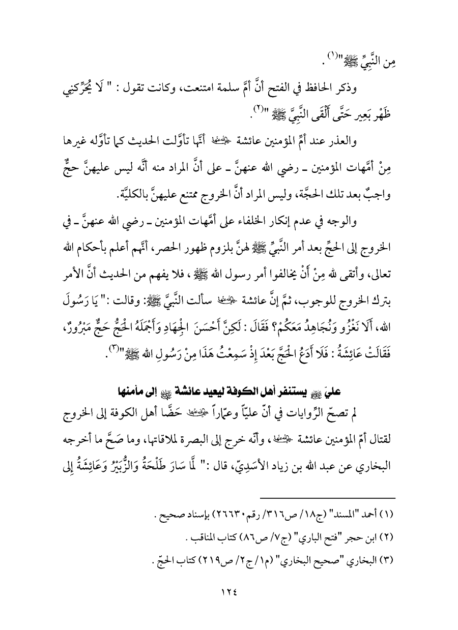 عليّ - رضي الله عنه - يستنفر أهل الكوفة ليعيد عائشة - رضي الله عنها - إلى مأمنها