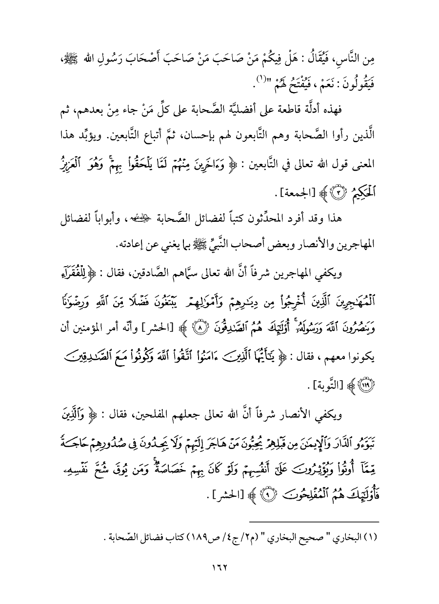 (¬١) البخاري " صحيح البخاري " (م ٢/ج ٤/ص ١٨٩) كتاب فضائل الصّحابة.