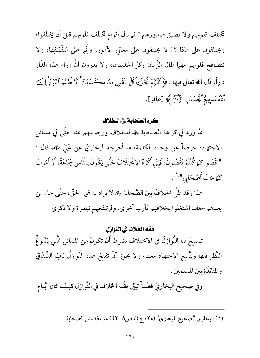 كره الصّحابة - رضي الله عنهم - للخلاف