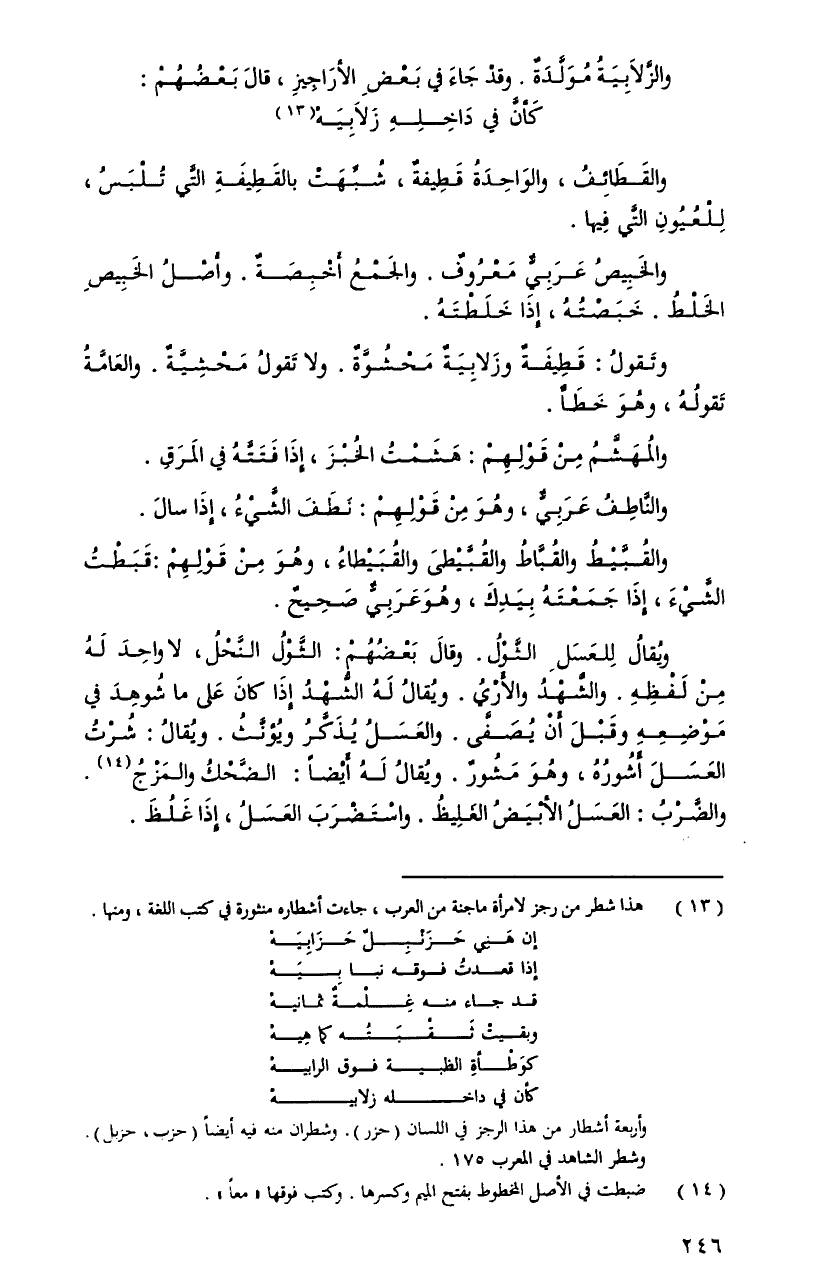 والزَّلابيةُ مولَّدةٌ. وقدْ جاءَ فِي بعضِ الأرَاجيزِ، قالَ بعضهُمْ:
