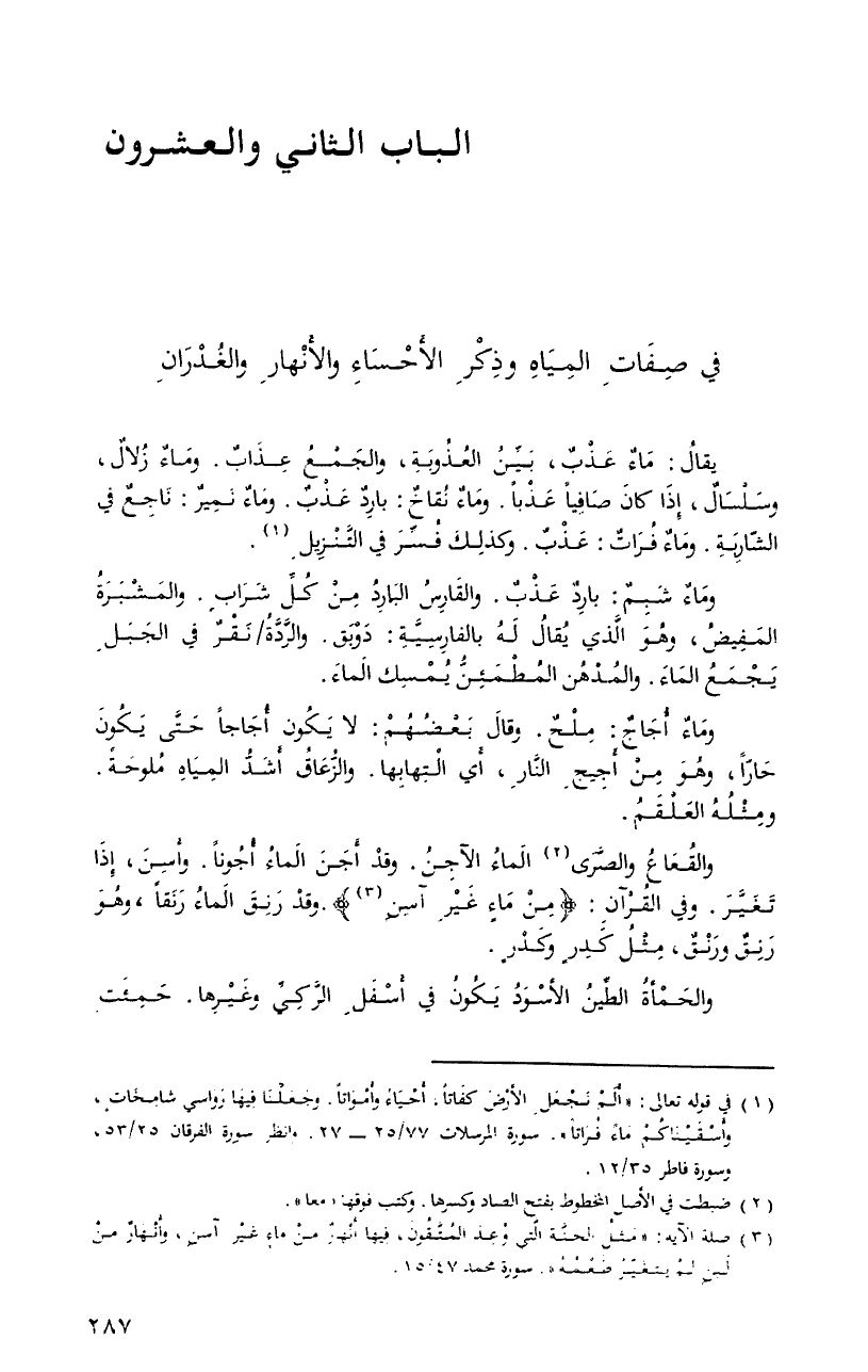 صفاتِ المياهِ وذكرِ الأحساءِ والأنهارِ والغدرانِ