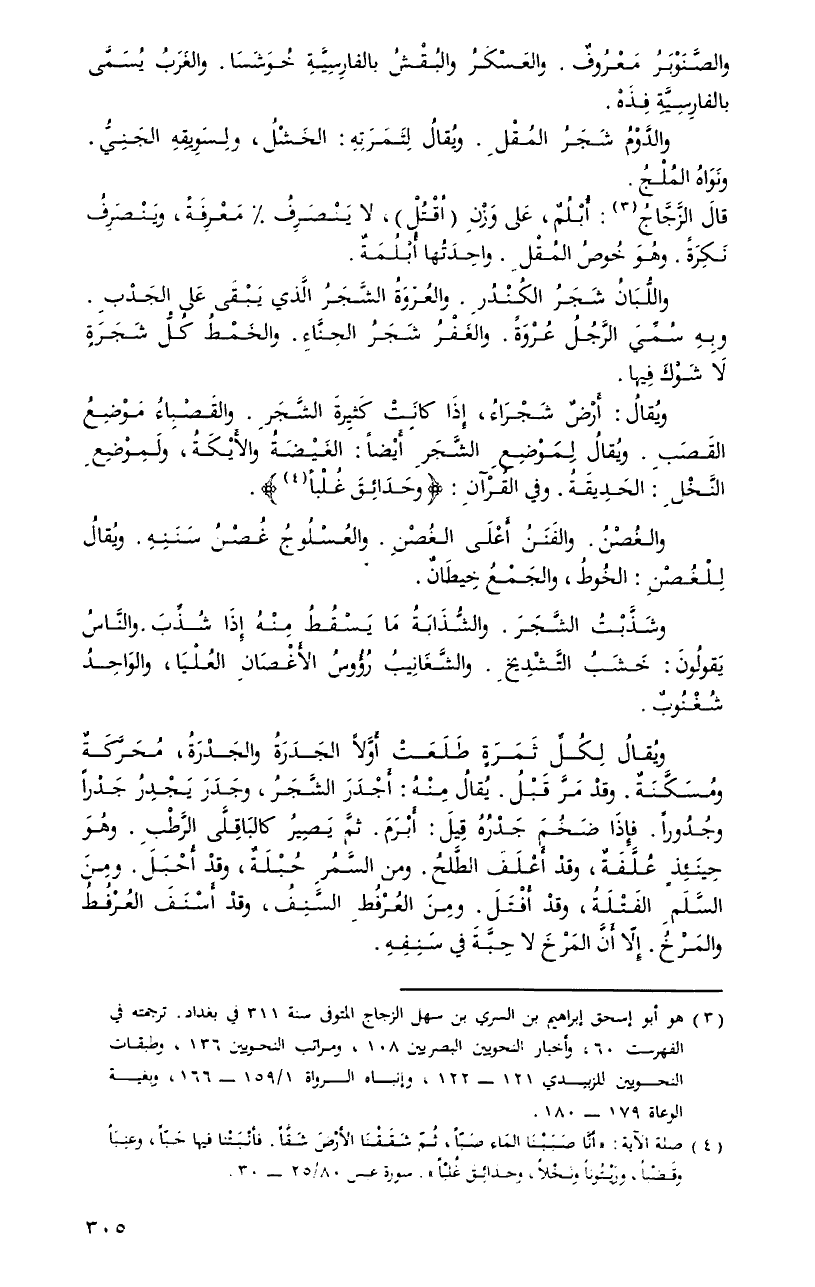 واللُّبانُ شجرُ الكندرِ. والعروةُ الشَّجرُ الَّذِي يبقَى عَلى الجدْبِ. وبهِ سُمِّيَ الرَّجلُ عروةً. والغفرُ شجرُ الحنَّاءِ. والخمطُ كلُّ شجرةٍ لاَ شوكَ فِيها.