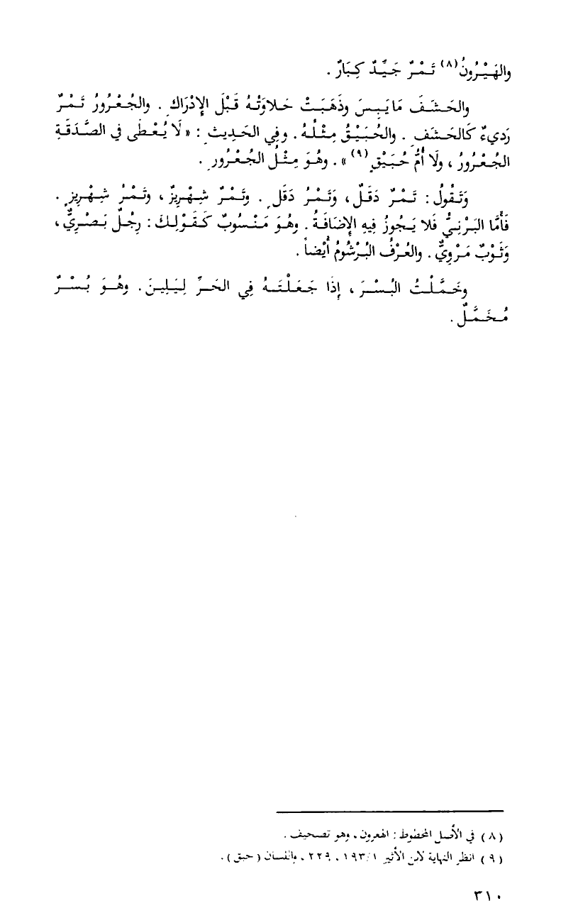 وتقولُ: تمرٌ دقلٌ، وتمرُ دقلٍ. وتمرٌ شهريزٌ، وتمرُ شهريزٍ. فأمَّا البرنيُّ فلا يجوزُ فيهِ