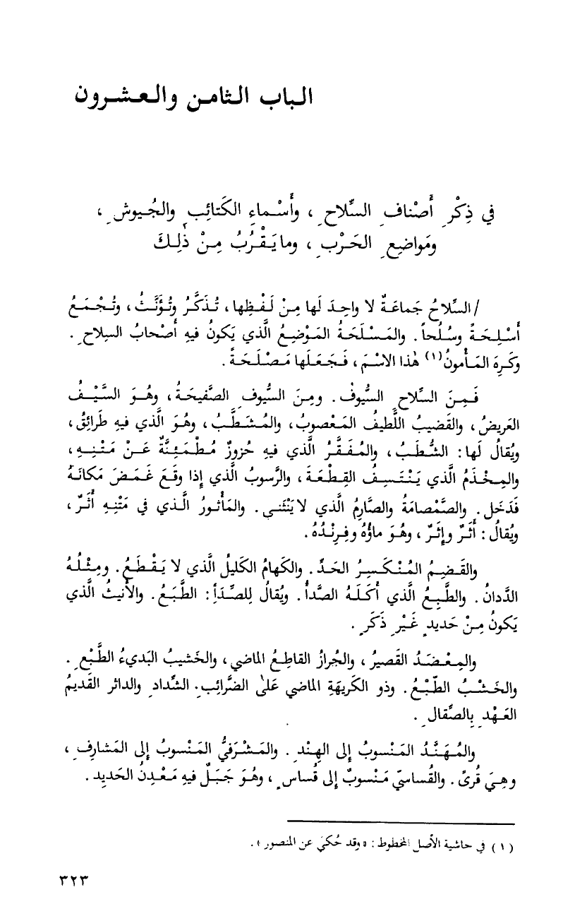 ذكرِ أصنافِ السِّلاحِ، وأسماءِ الكتائبْ والجيوشِ