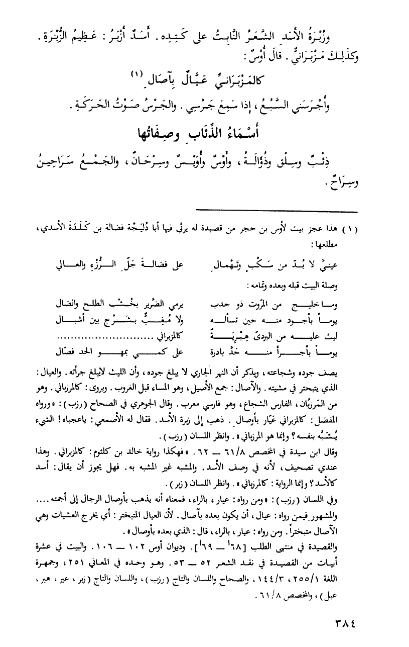 وزبرةُ الأسدِ الشَّعرُ النَّابتُ على كتدِه. أسدٌ أزبرُ: عظيمُ الزُّبرةِ. وكذلكَ مزبرانيٌّ. قال أوسٌ: