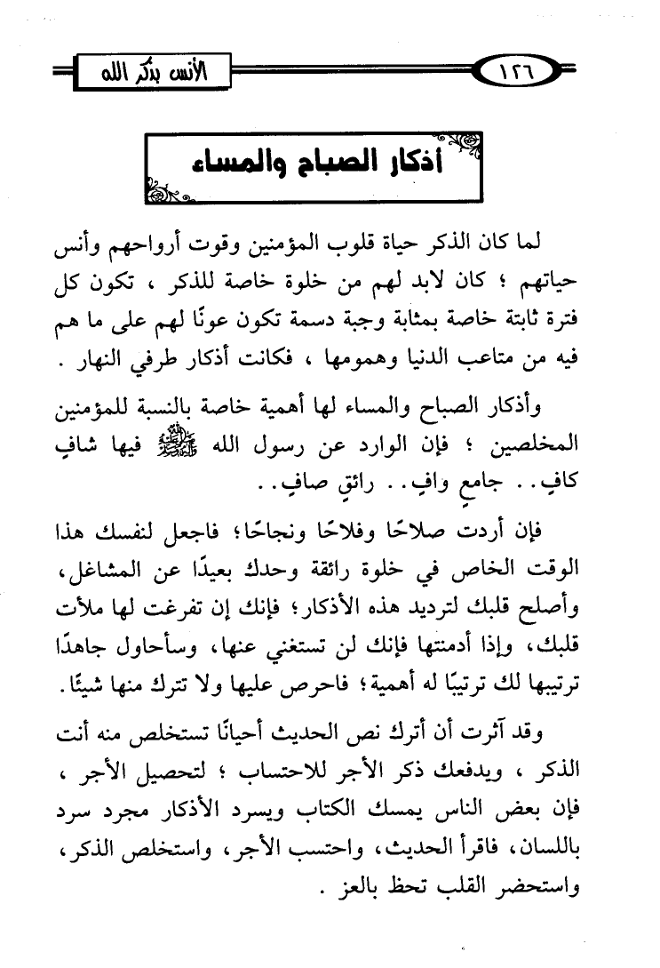 لما كان الذكر حياة قلوب المؤمنين وقوت أرواحهم وأنس حياتهم؛ كان لا بد لهم من خلوة خاصة للذكر، تكون كل فترة ثابتة خاصة بمثابة وجبة دسمة تكون عونًا لهم على ما هم فيه من متاعب الدنيا وهمومها، فكانت أذكار طرفي النهار.