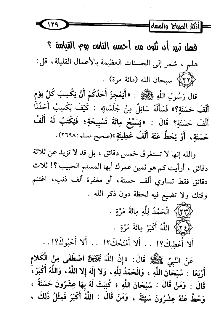 (22) سبحان الله (مائة مرة).