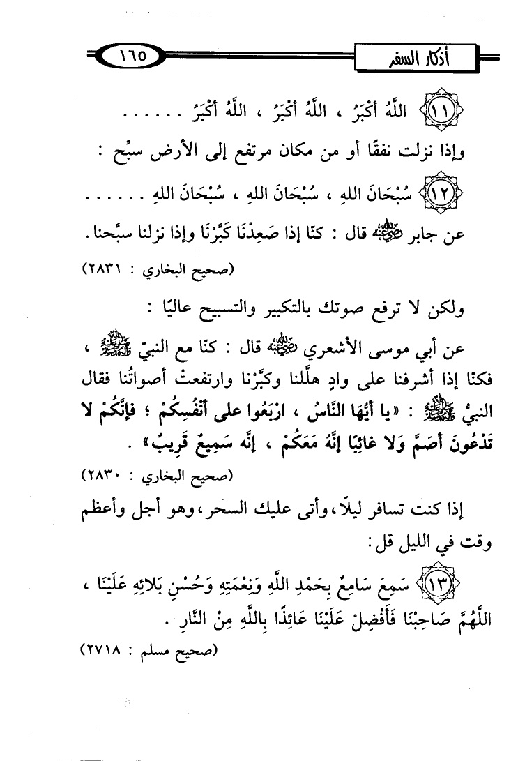 (13) سَمِعَ سَامِعٌ بِحَمْدِ الله وَنعْمَتِهِ وَحُسْنِ بَلائِهِ عَلَيْنَا، اللهمَّ صَاحِبْنَا فَأَفْضِلْ عَلَيْنَا عَائِذَا بِاللهِ من النَّارِ.