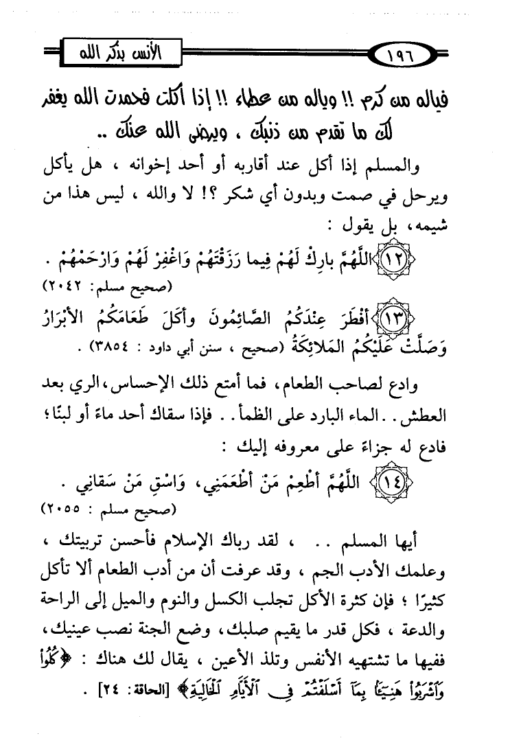 والمسلم إذا أكل عند أقاربه أو أحد إخوانه، هل يأكل ويرحل في صمت وبدون أي شكر؟! لا والله، ليس هذا من شيمه، بل يقول: