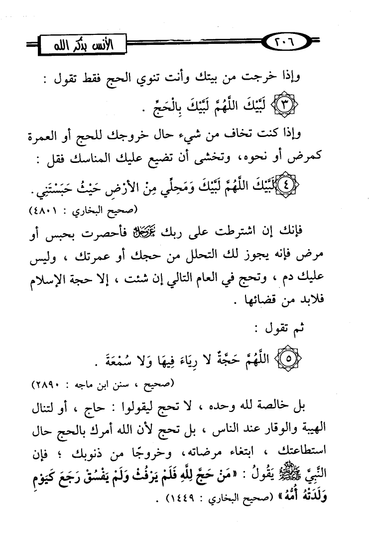 (3) لَبَّيْكَ اللَّهُمَّ لَبَّيْكَ بِالْحَجِّ.