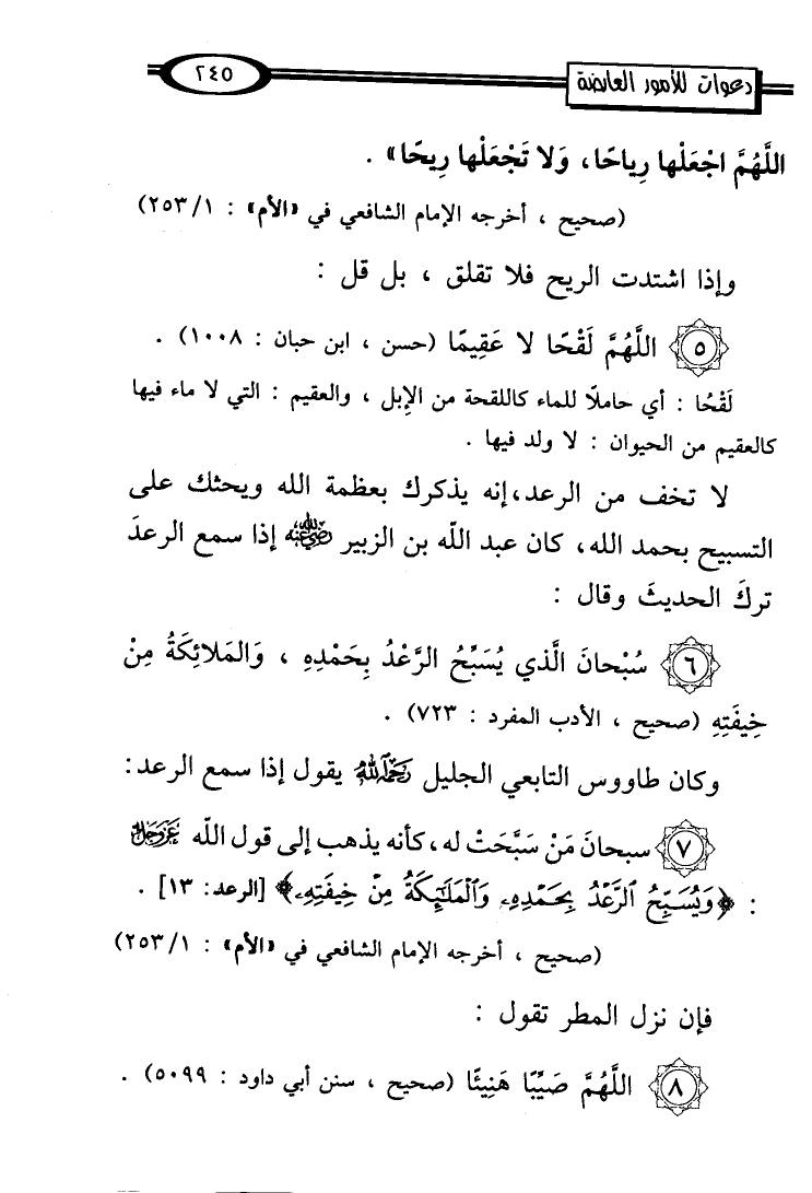 (5) اللهُم لَقْحًا لا عَقِيمًا (حسن، ابن حبان: 1008).