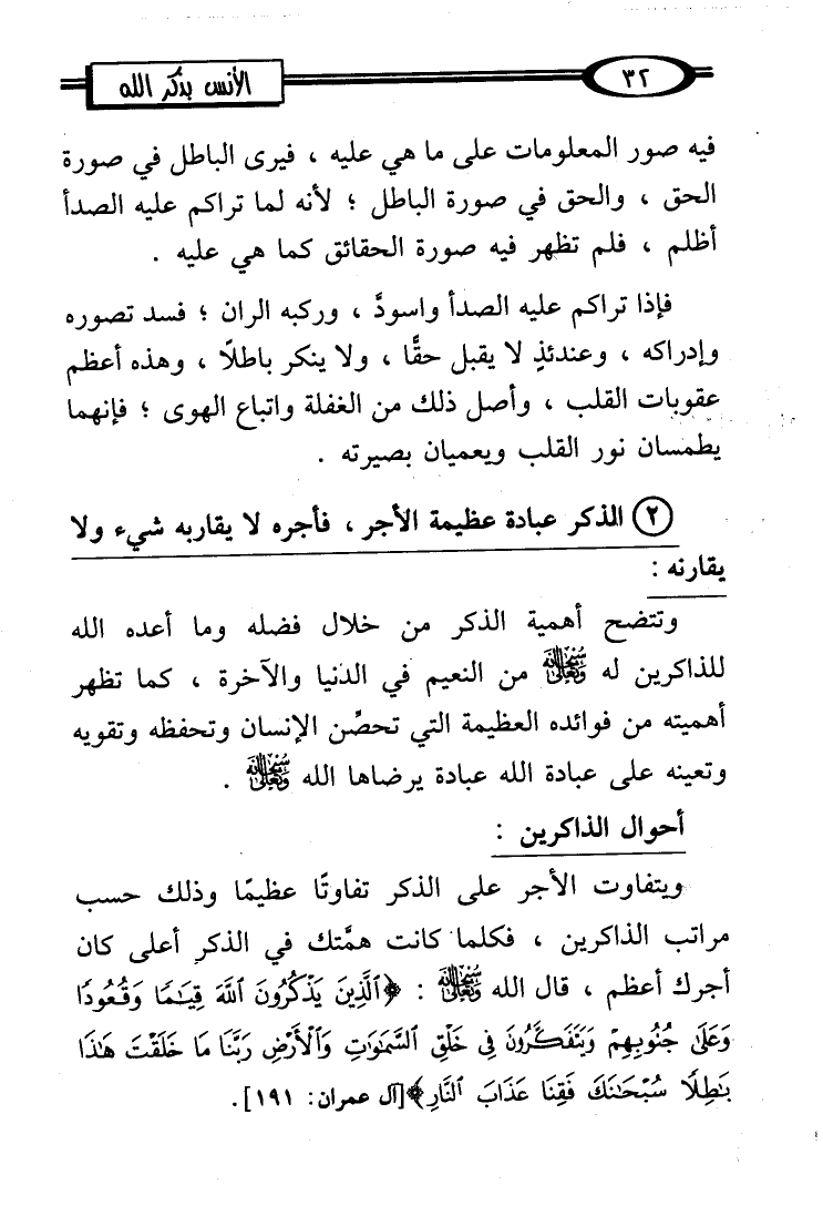 (2) الذكر عبادة عظيمة الأجر، فأجره لا يقاربه شطء ولا يقارنه: