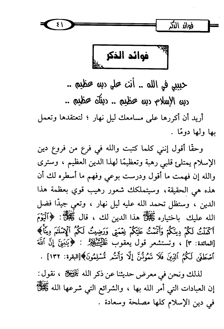 وحقًا أقول إنني كلما كتبت والله في فرع من فروع دين الإِسلام يمتلئ قلبي رهبة وتعظيمًا لهذا الدين العظيم، وسترى والله إن فهمت ما أقول ودرست بوعي وفهم ما أسطره لك أن هذه هي الحقيقة، وسيتملكك شعور رهيب قوي بعظمة هذا الدين، وستظل تحمد الله عليه ليل نهار، وتعي جيدًا فضل الله عليك باختياره - سبحانه وتعالى - هذا الدين لك، قال - سبحانه وتعالى -: {الْيَوْمَ أَكْمَلْتُ لَكُمْ دِينَكُمْ وَأَتْمَمْتُ عَلَيْكُمْ نِعْمَتِي وَرَضِيتُ لَكُمُ الْإِسْلَامَ دِينًا} [المائدة: 3]، وتستشعر قول يعقوب - عليه السلام -: {يَا بَنِيَّ إِنَّ اللَّهَ اصْطَفَى لَكُمُ الدِّينَ فَلَا تَمُوتُنَّ إِلَّا وَأَنْتُمْ مُسْلِمُونَ} [البقرة: 132].