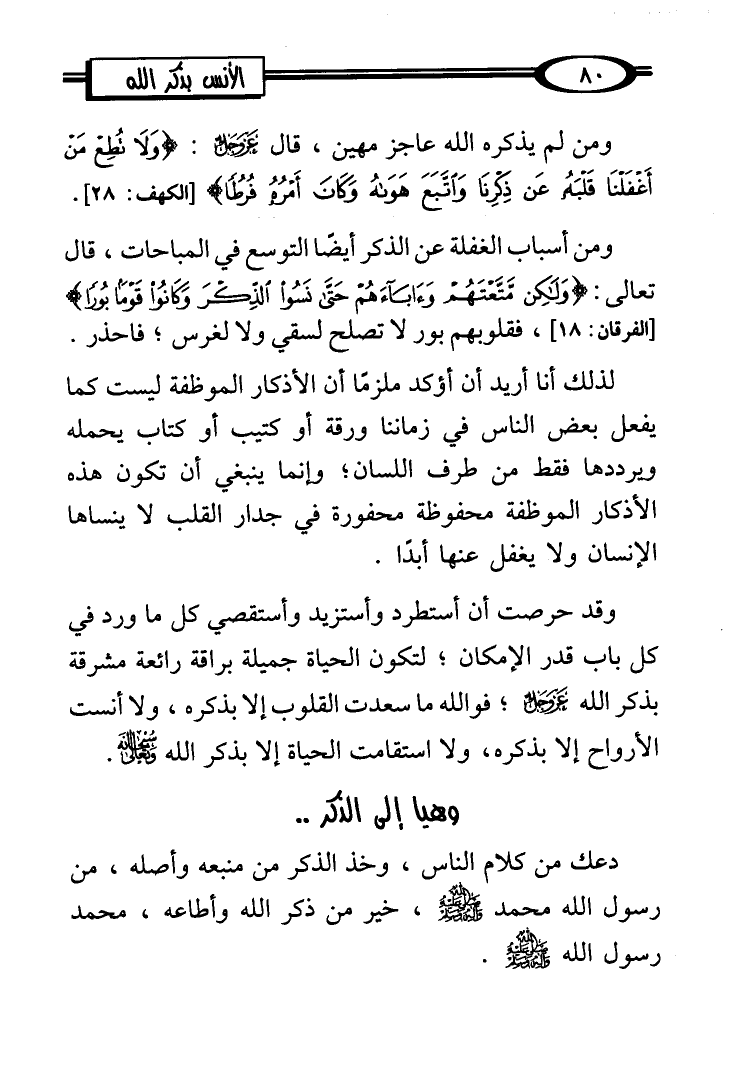 الأرواح إلا بذكره، ولا استقامت الحياة إلا بذكر الله - سبحانه وتعالى -.
