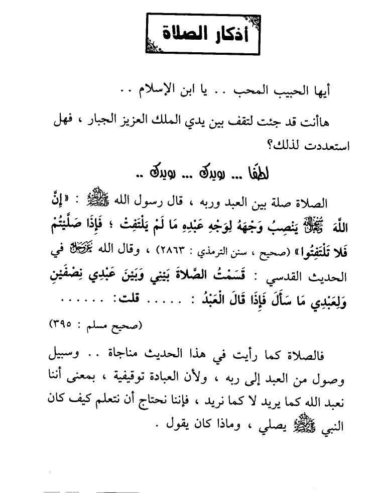 فالصلاة كما رأيت في هذا الحديث مناجاة .. وسبيل وصول من العبد إلى ربه، ولأن العبادة توقيفية، بمعنى أننا نعبد الله كما يريد لا كما نريد، فإننا نحتاج أن نتعلم كيف كان النبي - صلى الله عليه وسلم - يصلي، وماذا كان يقول.