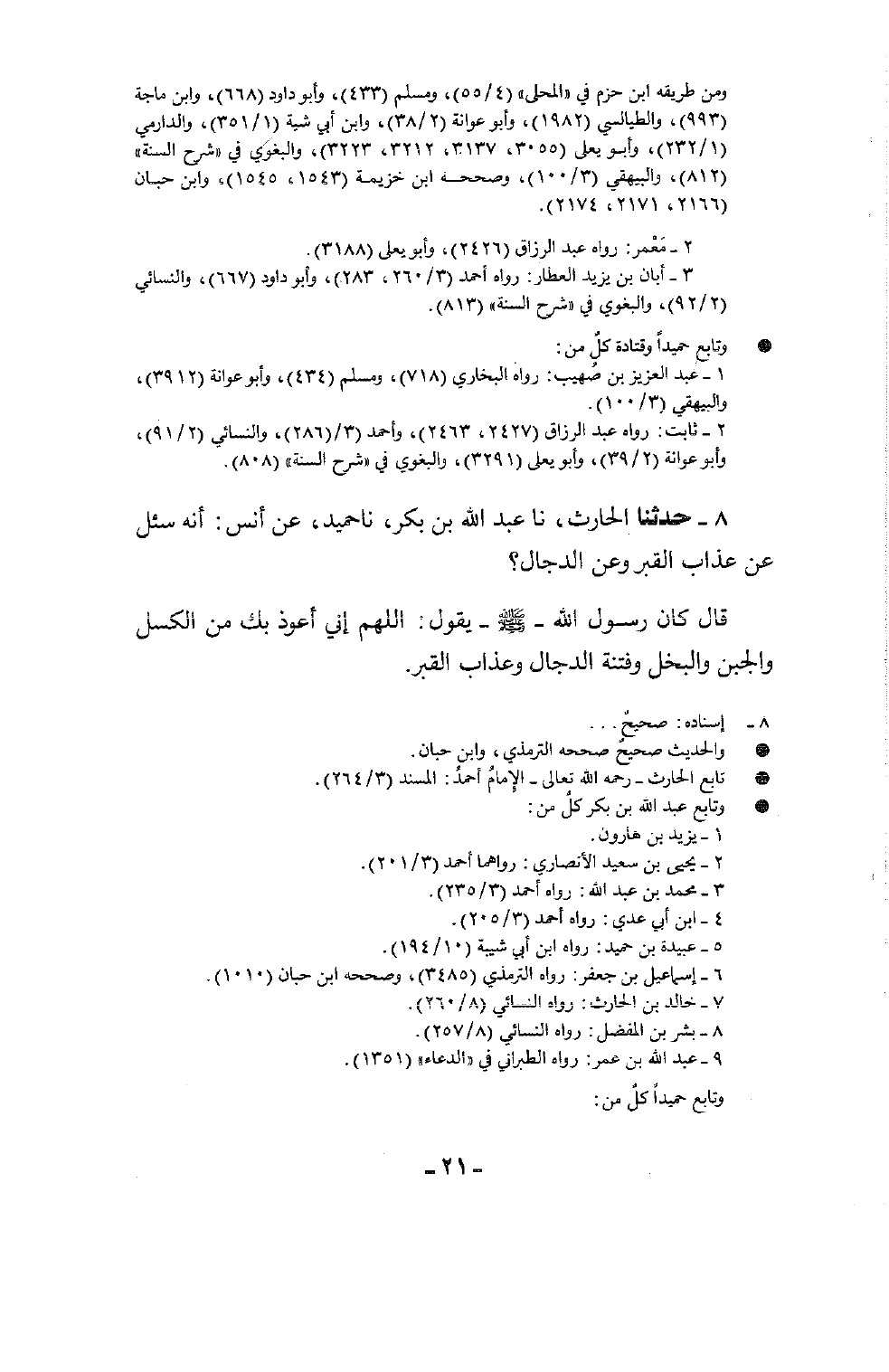 8 - حَدَّثَنَا الْحَارِثُ، نا عَبْدُ اللَّهِ بْنُ بَكْرٍ، نا حُمَيْدٌ، عَنْ أَنَسٍ، أَنَّهُ سُئِلَ عَنْ عَذَابِ الْقَبْرِ، وَعَنِ الدَّجَّالِ، قَالَ: كَانَ رَسُولُ اللَّهِ صَلَّى اللَّهُ عَلَيْهِ وَسَلَّمَ، يَقُولُ: «اللَّهُمَّ إِنِّي» §أَعُوذُ بِكَ مِنَ الْكَسَلِ وَالْجُبْنِ وَالْبُخْلِ وَفِتْنَةِ الدَّجَّالِ وَعَذَابِ الْقَبْرِ "
