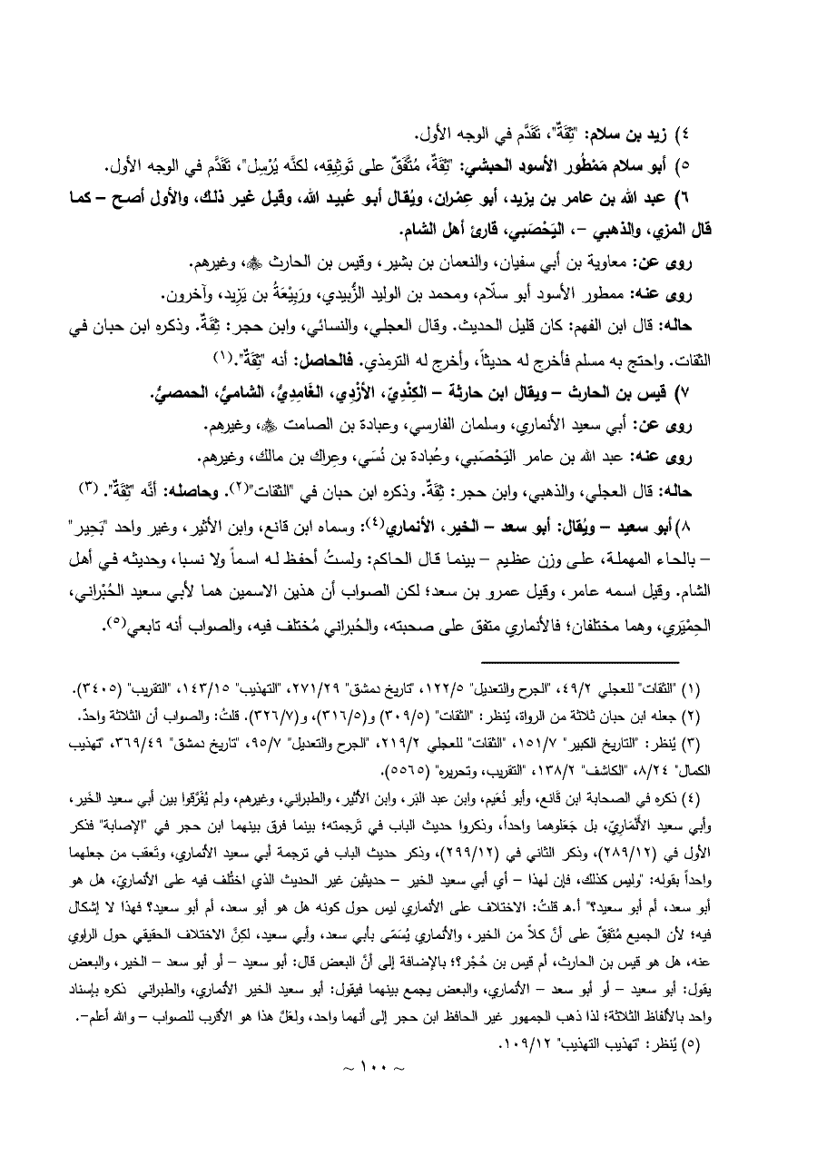 (¬٣) يُنظر: "التاريخ الكبير" ٧/ ١٥١، "الثقات" للعجلي ٢/ ٢١٩، "الجرح والتعديل" ٧/ ٩٥، "تاريخ دمشق" ٤٩/ ٣٦٩، "تهذيب الكمال" ٢٤/ ٨، "الكاشف" ٢/ ١٣٨، "التقريب، وتحريره" (٥٥٦٥).