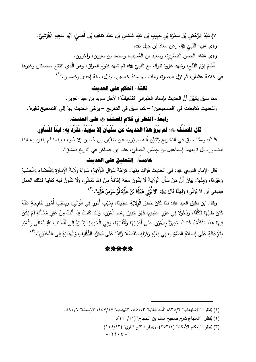 ٧) عَبْدُ الرَّحْمَنِ بْنُ سَمُرَةَ بْنِ حَبِيبِ بْن عَبْد شَمْسِ بْن عَبْد مَناف بْن قُصَيٍّ، أَبُو سَعِيدٍ الْقُرَشِيُّ.