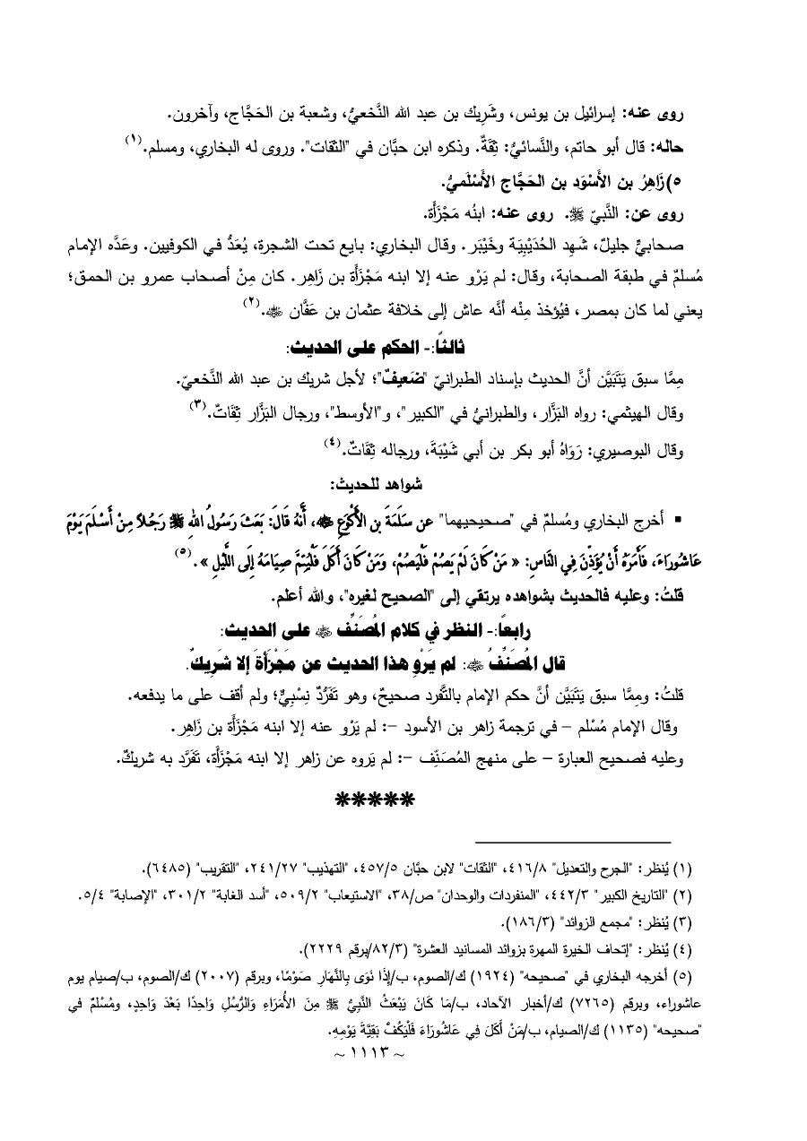 صحابيٌّ جليلٌ، شَهِد الحُدَيْبِيَة وخَيْبَر. وقال البخاري: بايع تحت الشجرة، يُعَدُّ في الكوفيين. وعَدَّه الإمام مُسلمٌ في طبقة الصحابة، وقال: لم يَرْو عنه إلا ابنه مَجْزَأَة بن زَاهِر. كان مِنْ أصحاب عمرو بن الحمق؛ يعني لما كان بمصر، فيُؤخذ مِنْه أنَّه عاش إلى خلافة عثمان بن عَفَّان - رضي الله عنه -. (¬٢)