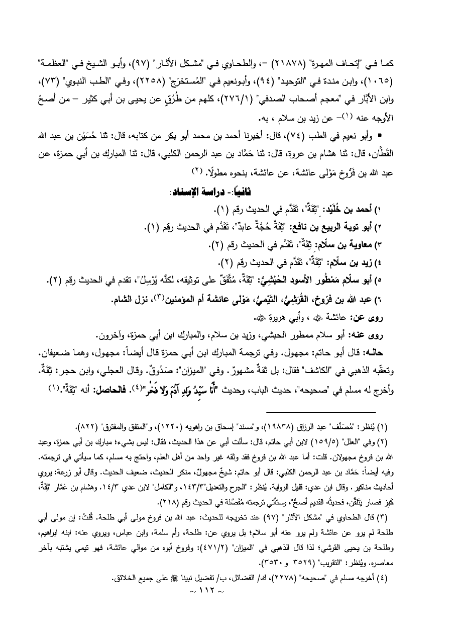 ٤) زيد بن سلّام: "ثِقَةٌ"، تَقَدَّم في الحديث رقم (٢).